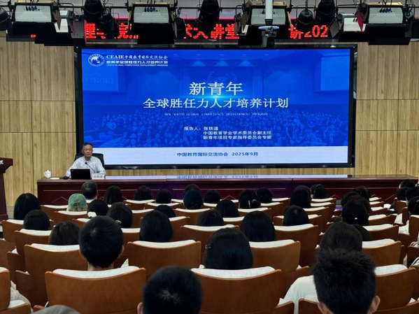 近日,中国教育学会学术委员会副主任张铁道博士、研究员应邀为我校外语学院全体无课教师、2025级学生,以及旅游学院、经管学院、文学院和马克思主义学院学生代表近200人作了题为“拓展国际视野提高全球胜任力——国际化人才培养‘新青年项目’实践”的专题讲座。